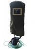 Для защиты головы и дыхательных путей применяют специальные комплекты КЗОД (комплект защиты органов дыхания): а) комплект защиты КЗОД с пескоструйным шлемом МИОТ 49 состоит из: пневмофильтрующего устройства с креплением на установку, шлема МИОТ 49, внутренней оснастки и пелерины, защищающей шею и грудь. В передней, лицевой, части корпуса шлема расположена подвижная рамка стеклодержателя, сменного стекла смотрового окна, которая закреплена в рабочем положении с помощью резинового натяжителя. В затылочной части корпуса пескоструйного шлема МИОТ 49 вмонтирован штуцер воздуховода, к которому подведена гибкая воздухопроводная трубка, соединенная другим концом с регулятором подачи воздуха, который крепится на поясном ремне оператора. Внутренняя оснастка состоит из воздуховода, выполняющего функцию распределения воздуха в зону дыхания и наголовника для крепления шлема к голове оператора. Наголовник состоит из несущей ленты и лямок амортизатора. В нижней части корпуса шлема, по всему его периметру на несущей ленте, с помощью заклепок, закреплена защитная пелерина. Края корпуса шлема, в основании, по всему периметру окантованы резиновым протектором, для защиты шеи от возможных ударов. б) комплект защиты КЗОД состоит из: шлема МИОТ 49, пневмофильтрующего устройства с креплением на установку, фильтроэлемента и шланга ПВХ для подачи воздуха в шлем. Шлем МИОТ 49 предназначен для защиты органов дыхания и зрения человека при производстве абразивоструйных работ, в условиях сильно запыленной среды и в закрытых помещениях. в) Количество подаваемого под шлем воздуха: 180 – 200 дм/мин при давлении на входе воздухоподающего шланга 20 кПа.(0,2 кгс/см). Масса не более 1,3 кг. Имеет широкое применение при производстве пескоструйных работ, обработке гранита, мрамора, металлических деталей, изделий из дерева. Используется в комплекте с костюмом для пескоструйщика.