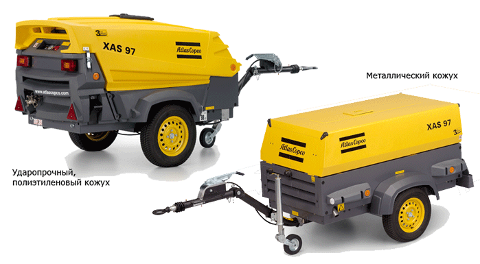- Компрессоры XAS, выпускаемые на базе одноосного шасси, сертифицированы как транспортное средство.
